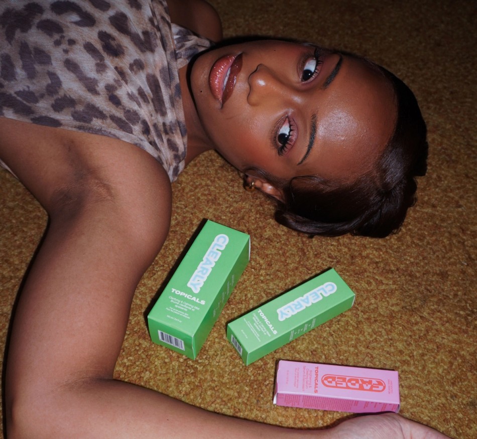 Clearly Acne Mist: A powerful face and body acne mist that minimizes pimples, blackheads, and whiteheads, while calming and soothing irritated skin. Use daily and on-the-go to control oil, reduce redness, and maintain even tone and texture. Stop Staring T-Shirt: Designed in collaboration with Meji Meji, a nostalgia-inspired brand with origins in Lagos, Nigeria, our "Stop Staring at My Zits" tee is made from a premium blend for that perfectly lived-in feel.