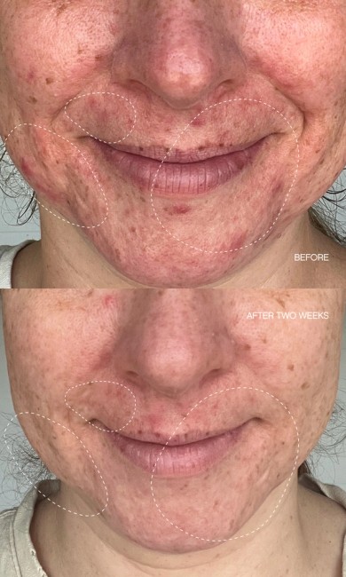 Use on areas prone to blemishes to help visibly reduce the look of redness and uneven texture for clearer-looking skin.