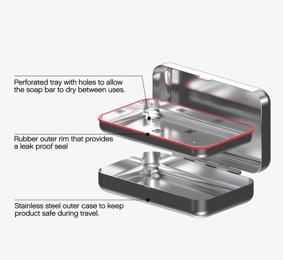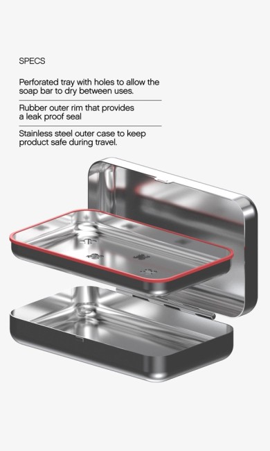Designed with your next getaway in mind, our exclusive stainless steel Travel Soap Tin keeps your Faded and Slather bars fresh, clean, and ready to lather. Tough enough to throw in your carry-on, but chic enough for your bathroom sink. Because smooth skin never takes a vacation.